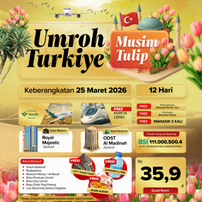 Seat Terbatas! PROMO paket umroh termurah. Paket Ibadah Umroh Plus Turkiye Termurah se-Indonesia untuk keberangkatan tanggal 25 Maret 2026 dengan biaya mulai dari 35,9 juta/pax. Hubungi kami sekarang juga sebelum seat kehabisan. 100% pasti berangkat karena tiket sudah confirm UMROH PLUS TURKI 25 Maret 2026, 12 HARI BERKAH & LIBURAN IMPIAN! - Program Full Ibadah & Wisata HARGA 35.900.000 (Pesan Sekarang dan dapatkan Diskon) Fasilitas: Saudia Airlines Direct Flight Free Kereta Cepat Madinah ➝ Makkah Free Perlengkapan Ibadah + Fasilitas Lengkap Hotel Super Dekat Masjid — Jalan Kaki Wisata Turki: Hagia Sophia, Hippodrome, Blue Mosque Harga Spesial, Berangkat Nyaman! Hubungi AMMAR TOUR Sekarang! Yuk, ngobrol dulu bareng tim kami untuk konsultasi Umroh dan Haji impian kamu! Untuk Info lebih lanjut mengenai paket Haji dan Umrah Ammar Tour : ☎ Hubungi Kami: 08118 063 063 (Customer Service & Agen) 08118 730 730 (B2B/Kemitraan) 0811 8000 2424 (Purchasing/Buyer) 08118 083 083 (Sosial & Dakwah)