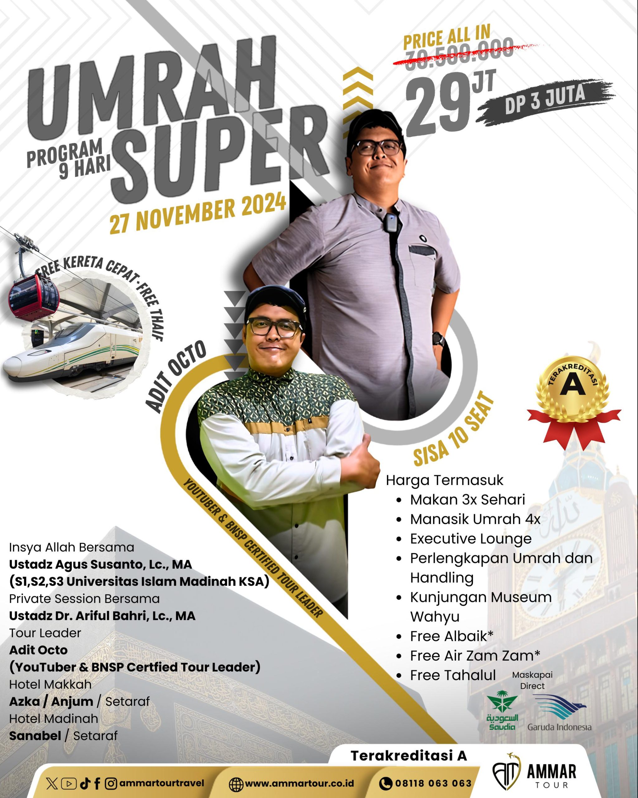 Paket Umroh bersama Adit Octo keberangkatan 27 November 2024
