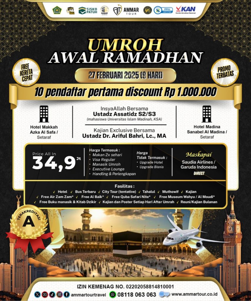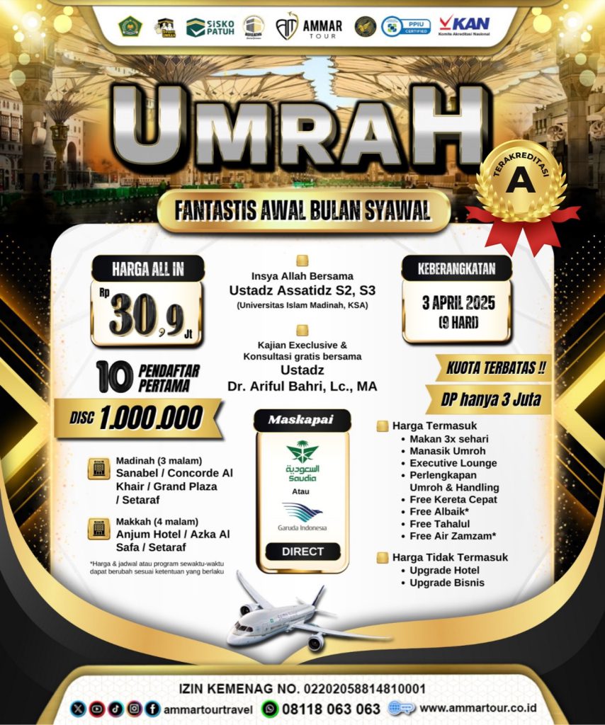 link paket umroh ammartour: travel umroh sesuai sunnah, biaya haji plus, umroh syawal 2024