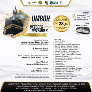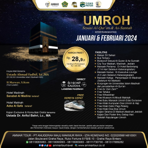 Paket Umroh Murah dengan Fasilitas Bintang 5 dan Terpecaya Paket Umroh murah di bulan Muharram dengan keberangkatan Juli 2024. Daftarkan Ibadah Umroh kamu bersama ammartour, Hubungi kami Sekarang juga...